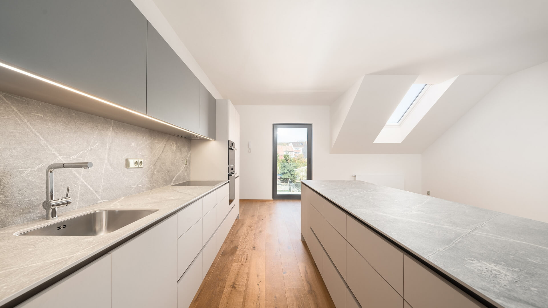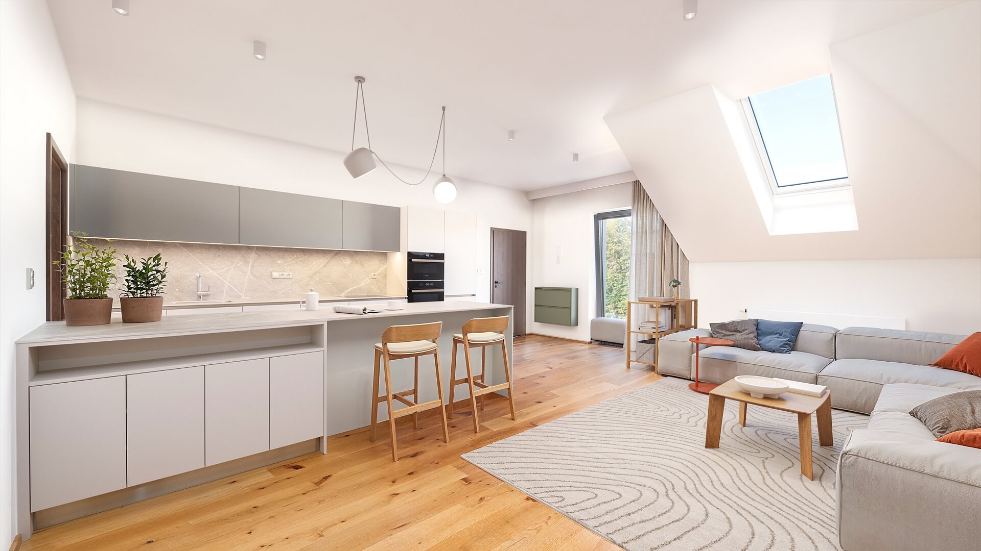 Světlý podkrovní byt s interiérem v kvalitním standardu a s parkovacím místem je umístěn ve 2. patře (3. NP) rezidenčního projektu, který byl v r. 2023 dokončen ve vinařské obci Želešice na předměstí Brna, v blízkosti přírodního parku Bobrava.