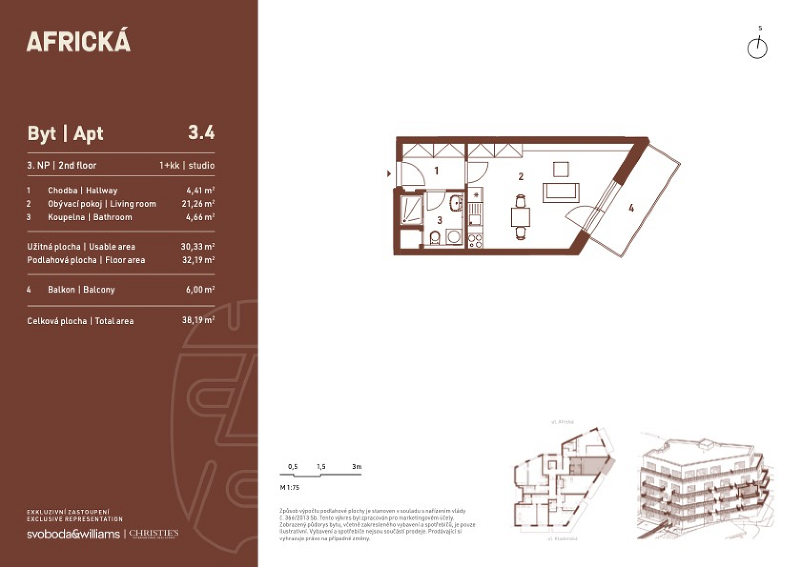 Podlahová plocha 32,19 m2, balkón 6 m2, sklep 1,7 m2.