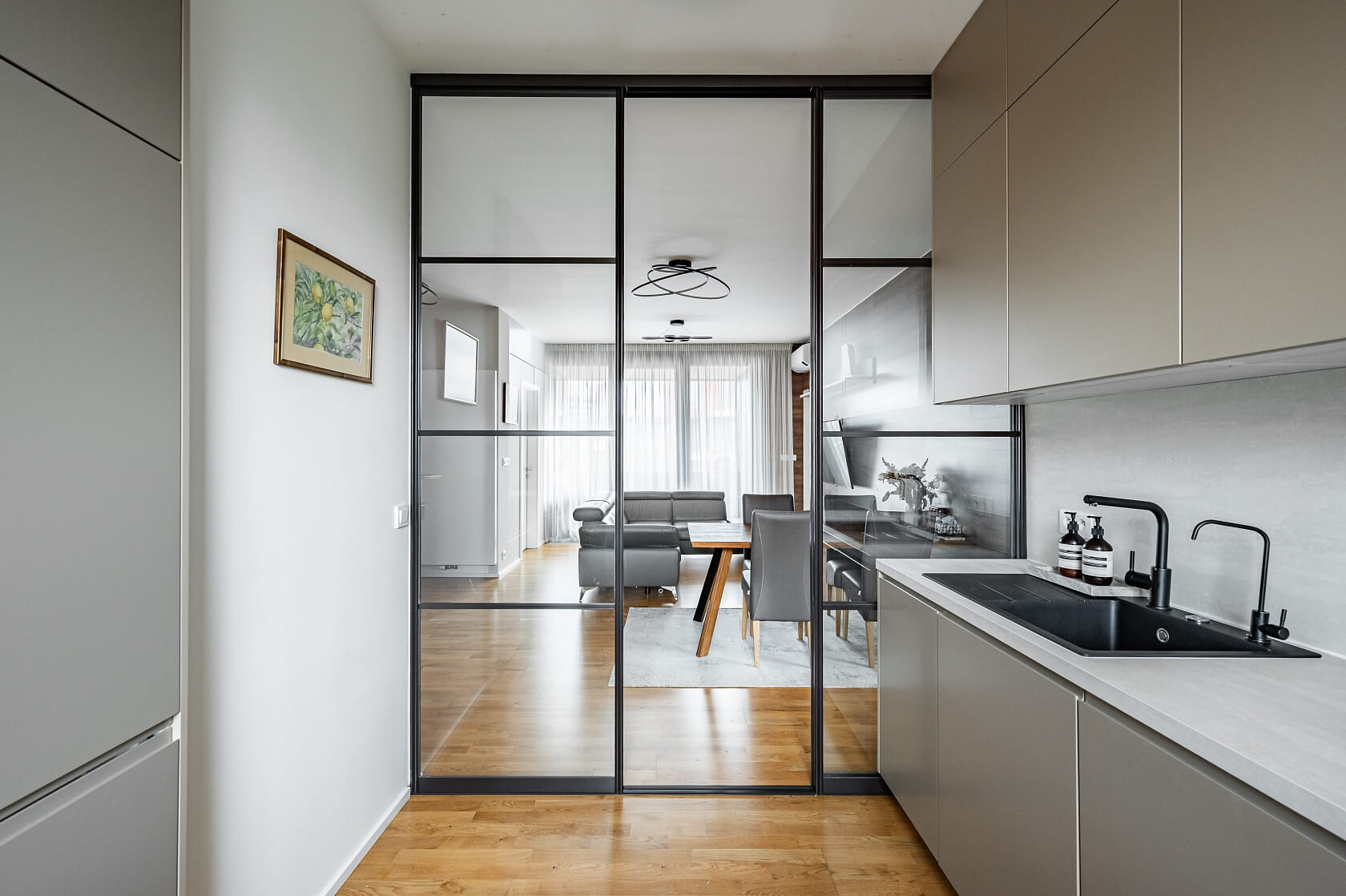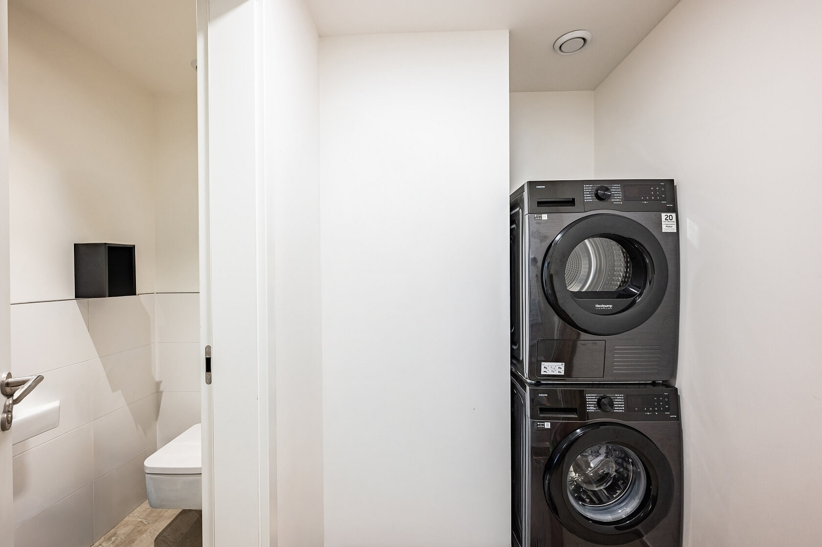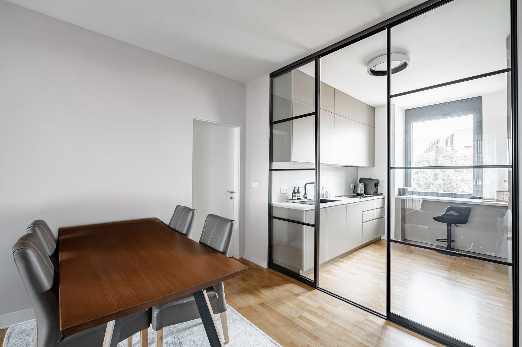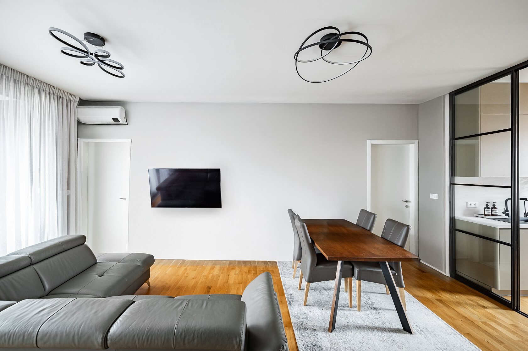 Moderně zařízený klimatizovaný byt s vysokými stropy, lodžií a 2 parkovacími místy je součástí polyfunkčního domu z r. 2024 stojícího blízko Libeňského přístavu a Palmovky, v místě s kompletní občanskou vybaveností.