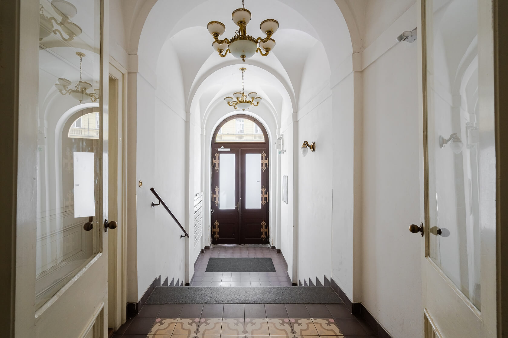 Okna i podlahy jsou dřevěné, vybavení zahrnuje kuchyňskou linku na míru zařízenou vestavěnými spotřebiči. Vytápění zajišťuje centrální kotelna, pro větší pohodlí je instalována klimatizace. Společné prostory činžovního domu zdobí zrepasované původní architektonické a řemeslné prvky. Jednotlivá patra spojuje nejen výjimečné historické schodiště, ale i moderní výtah.
