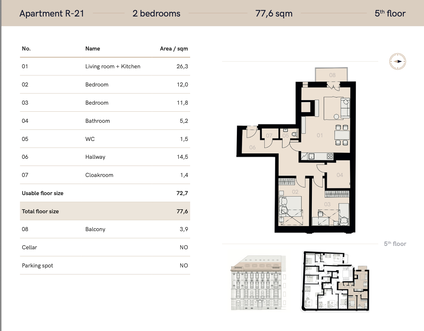 Podlahová plocha 77,6 m2, balkón 3,9 m2.