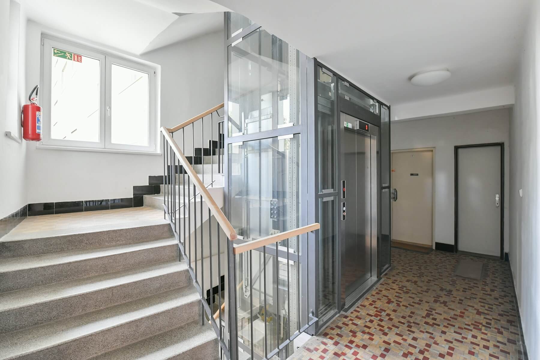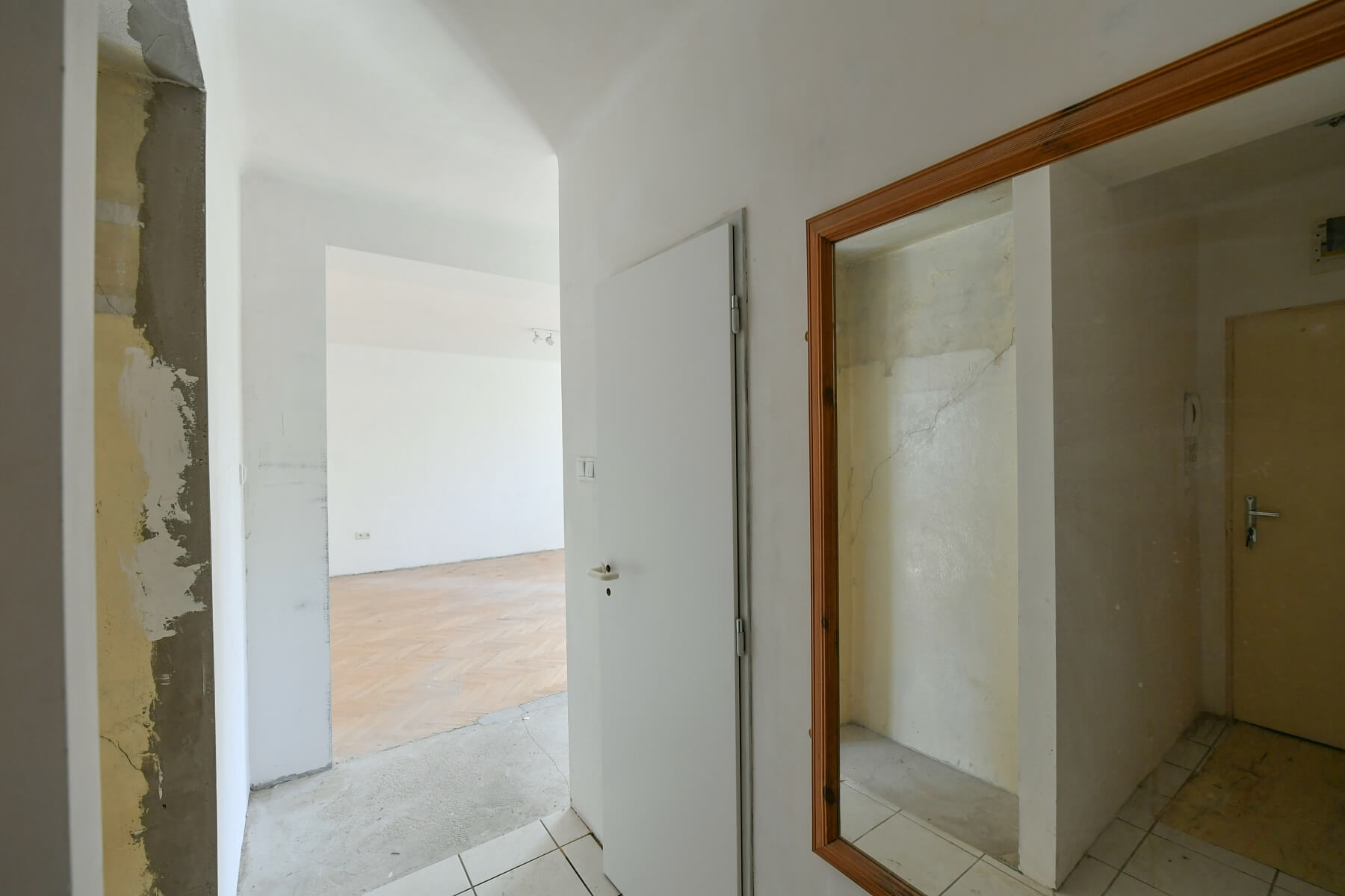 Jednopokojový byt s okny na západ do boční jednosměrné ulice se nachází v 1. podlaží bytového domu stojícího v Praze 7 – Holešovicích blízko stanice metra Nádraží Holešovice, v sousedství území, které projde rozsáhlou revitalizací a přeměnou v moderní čtvrť.