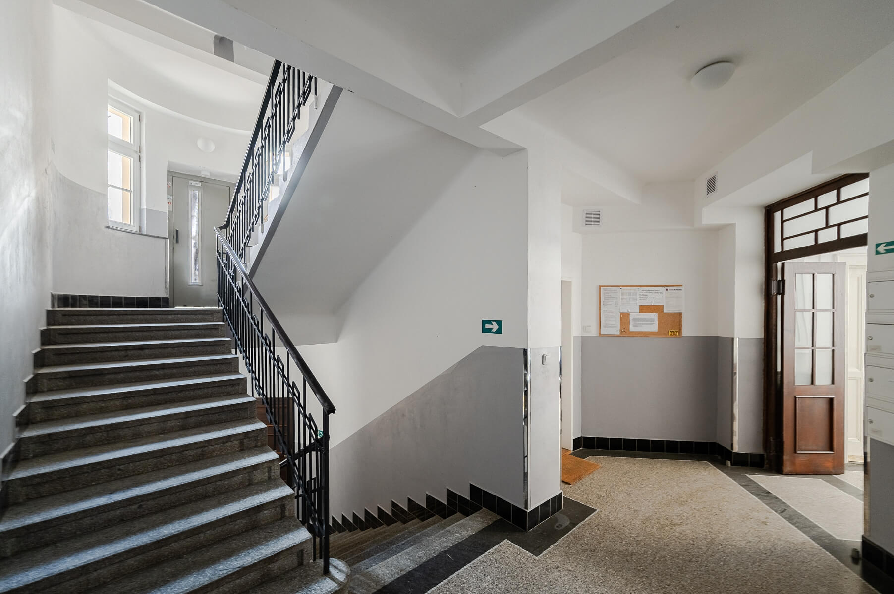 Byt byl kompletně zrekonstruován v r. 2019. Interiérové dveře jsou značky Vekra stejně jako dřevěná okna s trojskly, podlahy jsou vinylové s podlahovým vytápěním. Vybavení bytu zahrnuje úložný vestavěný nábytek na míru a kuchyň od společnosti Hanák. Vytápění je zajištěno elektrokotlem, lze přitápět i klimatizací. K bytu přísluší také odvětrávaný sklep. Nárožní dům je udržovaný, má výtah vedoucí do mezipater, do SVJ plynou příjmy z pronájmu dvou nebytových jednotek. Obyvatelům je k dispozici vnitroblok.