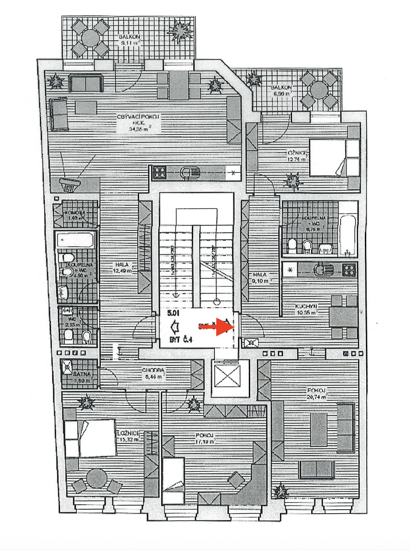 Podlahová plocha 58,7 m2, balkón 6,7 m2.
