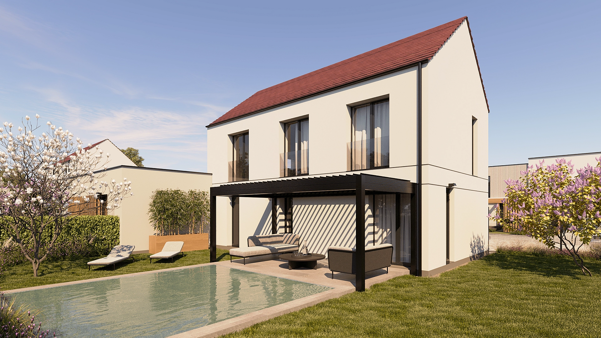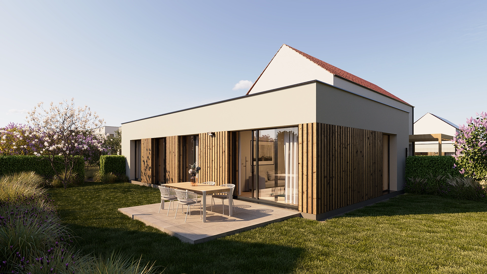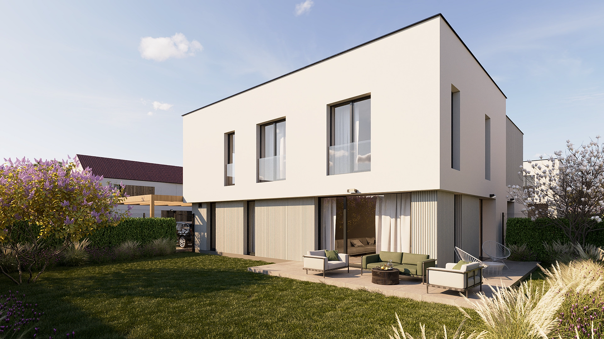 Lze vybírat ze tří typů: Two story (4+kk nebo 5+kk), Double block (4+kk) nebo Bungalow (4+kk). Výměry domů jsou od cca 100 m² až do cca 120 m², velikost pozemku se pohybuje mezi 402 m² a 559 m². U každého z domů budou připravena dvě venkovní parkovací stání, vstupy zkrášlí profesionálně navržené předzahrádky. Ke standardu patří plastová okna antracitové barvy s izolačními trojskly a elektricky ovládanými venkovními žaluziemi, vstupní dveře bezpečnostní třídy III, designová koupelnová sanita nebo podlahové vytápění napojené na tepelné čerpadlo vzduch-voda. Interiérovou podlahu, velkoformátové obklady, dlažbu a dekory dveří je možné vybrat z několika barevných variant. Ke snížení ekologického dopadu i nákladů na bydlení přispějí rekuperační jednotka a akumulační jímka, která umožní využití dešťové vody na závlahu zahrady a splachování. Domy mají navíc přípravu na FVE a na autonabíječku. Velkým benefitem projektu je možnost klientských změn, které novým majitelům dovolí přizpůsobit dispoziční řešení domů i standardy jejich požadavkům.