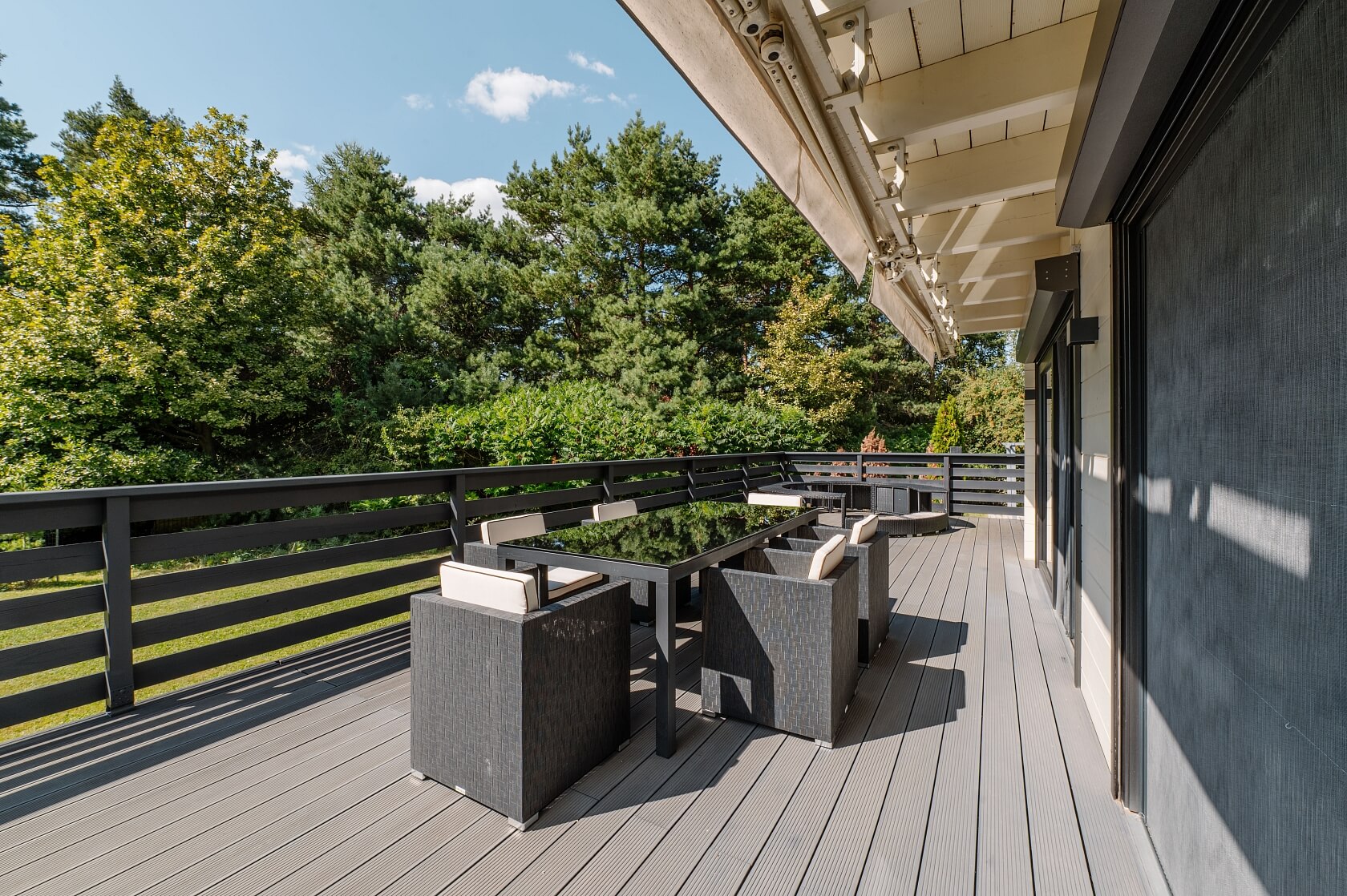 Dispozičně chata nabízí promyšlené řešení - v přízemí se nachází vstupní chodba, technická místnost, koupelna se sprchovým koutem, samostatná kuchyně, přičemž dominantou přízemí je prostorný obývací pokoj s jídelní částí a přímým vstupem na velkou terasu o rozloze 40 m² vybavenou automatickým rolovacím přístřeškem. V patře se nacházejí tři samostatné pokoje, šatna a koupelna, přičemž pokoje mají vlastní balkon. Celý interiér je zařízen v nadčasovém stylu a připraven k okamžitému užívání.
