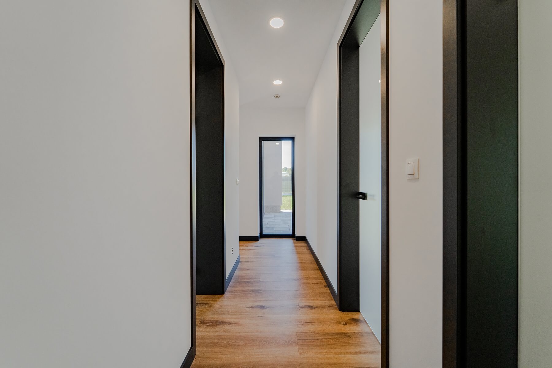 Dům je vybavený moderními technologiemi, které zaručují komfortní a úsporné bydlení. Plastová okna jsou osazena venkovními žaluziemi, podlahy v obytných místnostech jsou vinylové, jinde velkoformátová dlažba. Koupelny zdobí velkoformátové obklady a jsou zařízeny designovými bateriemi Tres Project a LED zrcadly s podsvícenou lupou. Technické zázemí zahrnuje krbová kamna, klimatizaci, tepelné čerpadlo Viessmann s teplovodním podlahovým vytápěním, nádrž na dešťovou vodu o objemu 3,3 m³ a zabezpečovací systém Jablotron. Dům je rovněž připravený na instalaci kuchyňské linky, nabíjecí stanice pro elektromobil, tepelného čerpadla pro bazén, kamerového systému, fotovoltaické elektrárny, bazénu a zahradního domku. Venkovní fasádu oživuje obložení přírodním kamenem