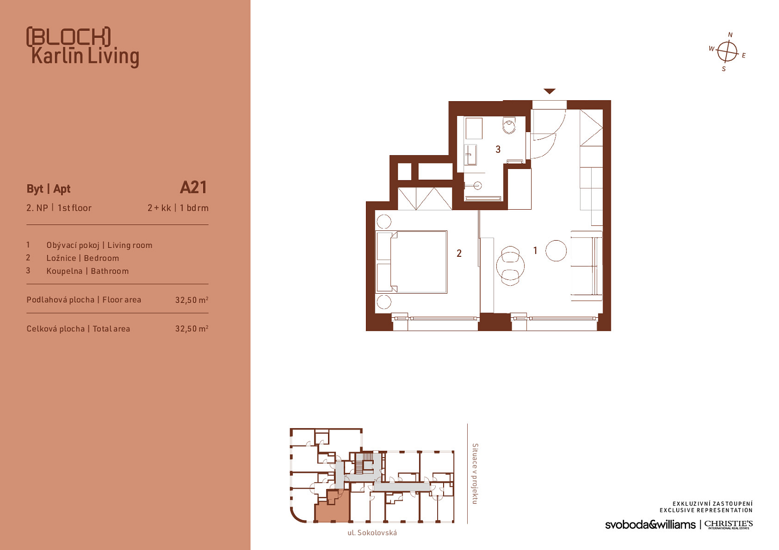 Nabízíme k pronájmu nový, kompletně zařízený byt v 1. patře nově postaveného rezidenčního projektu Block Karlín Living se společnou terasou na střeše, podzemním parkováním a klidným upraveným vnitroblokem. Sedmipodlažní dům pochází z dílny zavedené architektonické kanceláře Architekti Headhand. Budova se nachází ve vyhledávané pražské čtvrti Karlín v pěším dosahu stanic metra Invalidovna a Křižíkova, i v blízkosti zastávky tramvají. Trendy lokalita s rychlým spojením do centra nabízí kompletní občanskou vybavenost a služby. Bezprostřední okolí tvoří řada moderních business a administrativních center i tradiční městská zástavba s kosmopolitním mixem restaurací, kaváren, bister a obchodů. Čtvrť nabízí pestrou paletu příležitostí k aktivnímu vyžití např. v podobě tenisových kurtů, golfových odpališť, cyklostezky a řady fitness center.