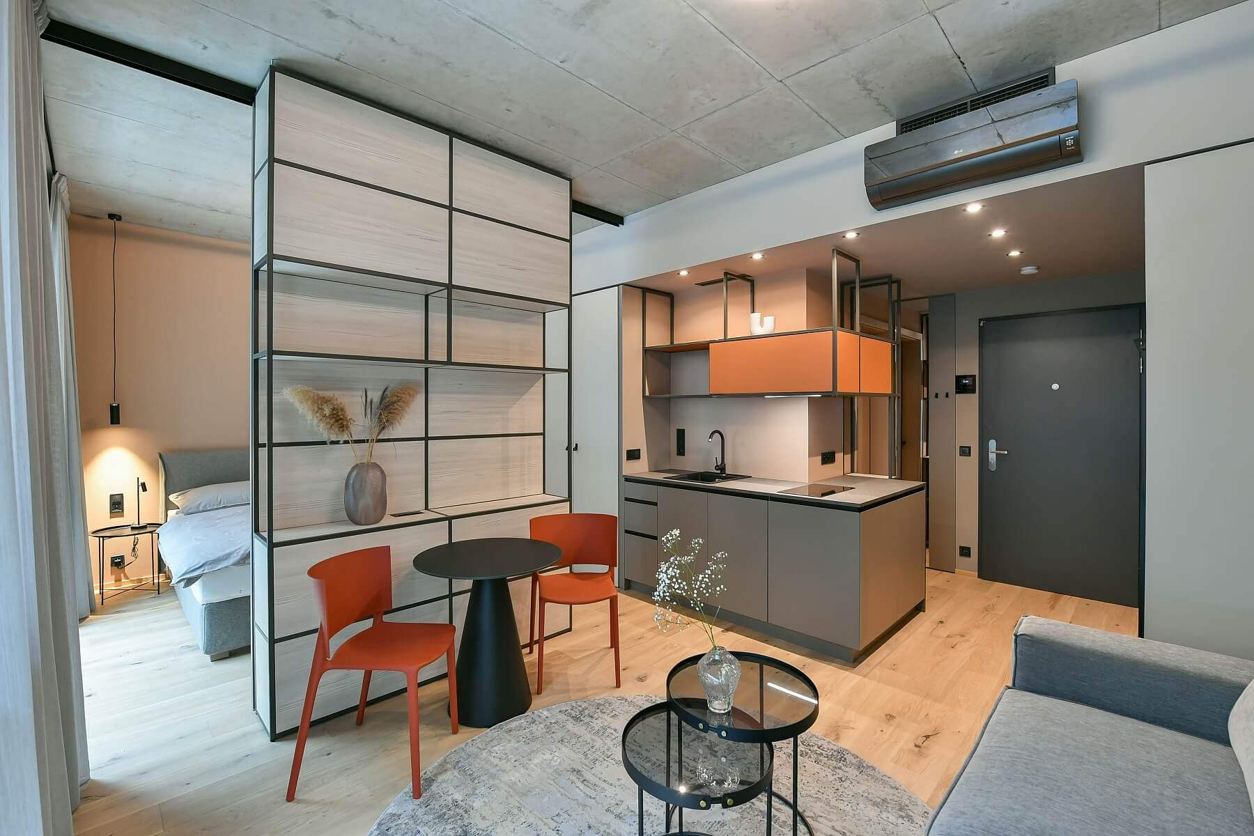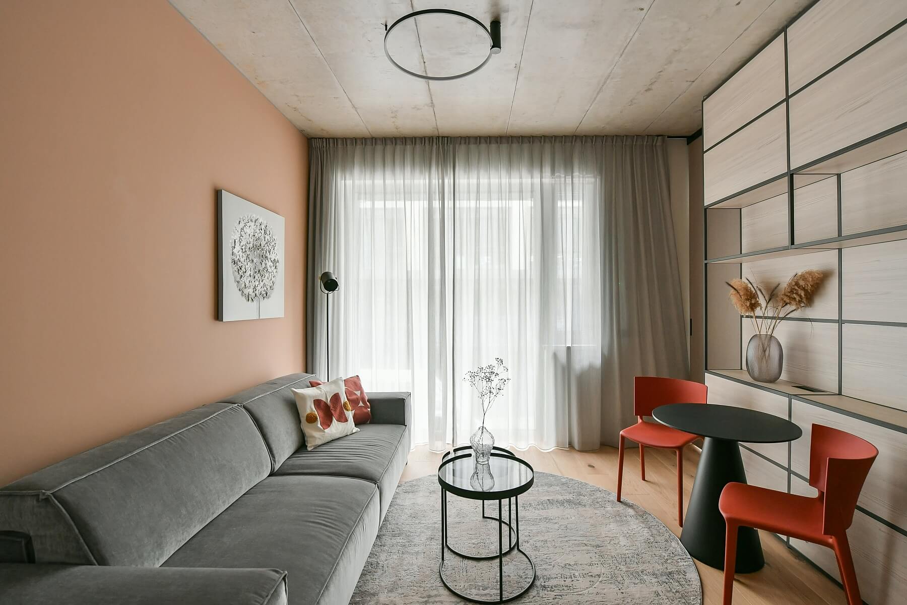 Nabízíme k pronájmu nový, kompletně zařízený byt v 1. patře nově postaveného rezidenčního projektu Block Karlín Living se společnou terasou na střeše, podzemním parkováním a klidným upraveným vnitroblokem. Sedmipodlažní dům pochází z dílny zavedené architektonické kanceláře Architekti Headhand. Budova se nachází ve vyhledávané pražské čtvrti Karlín v pěším dosahu stanic metra Invalidovna a Křižíkova, i v blízkosti zastávky tramvají. Trendy lokalita s rychlým spojením do centra nabízí kompletní občanskou vybavenost a služby. Bezprostřední okolí tvoří řada moderních business a administrativních center i tradiční městská zástavba s kosmopolitním mixem restaurací, kaváren, bister a obchodů. Čtvrť nabízí pestrou paletu příležitostí k aktivnímu vyžití např. v podobě tenisových kurtů, golfových odpališť, cyklostezky a řady fitness center.