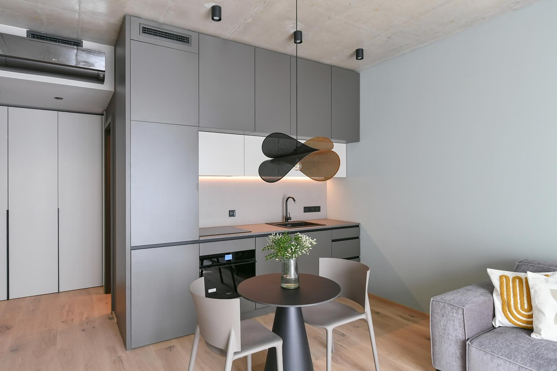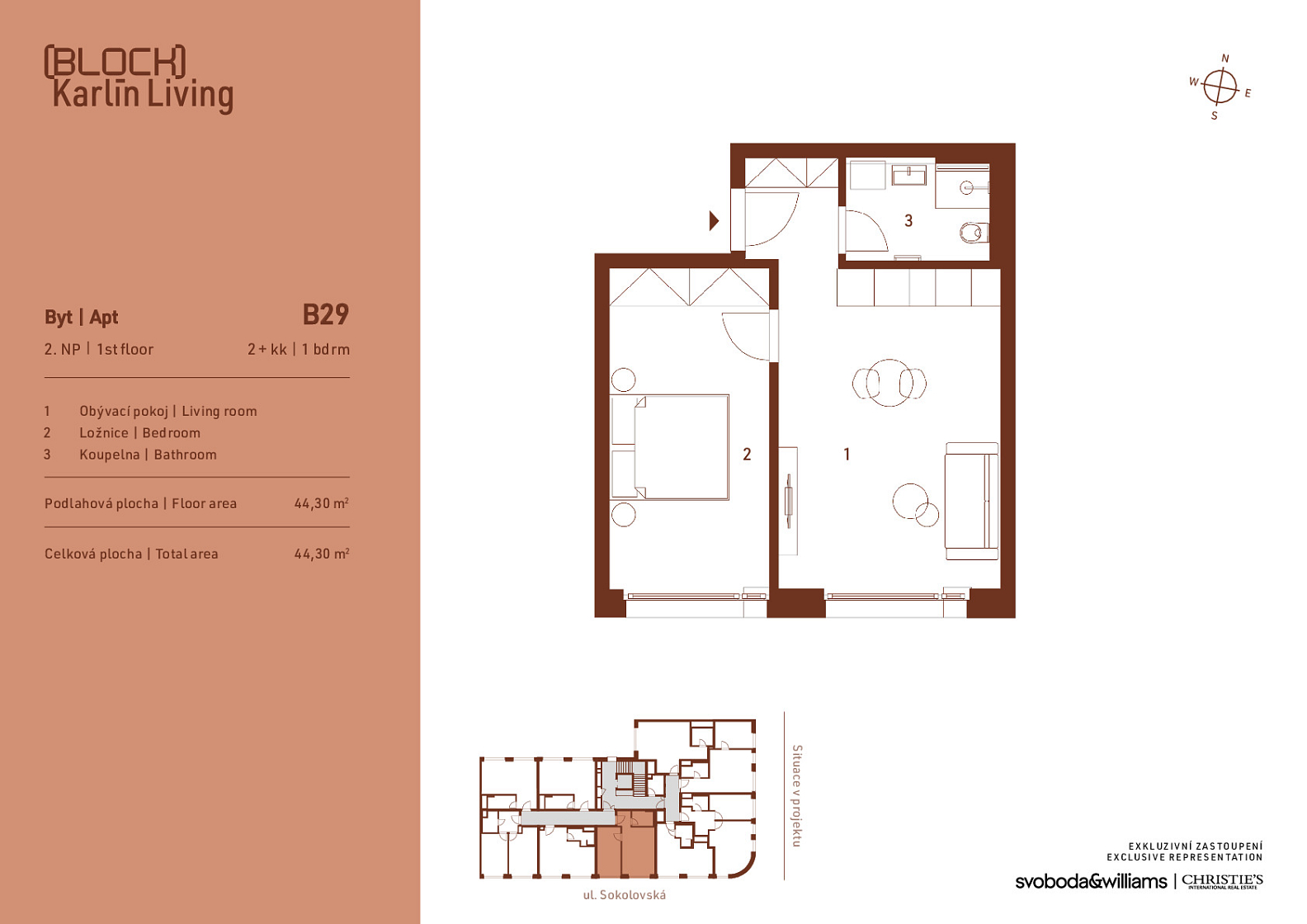 Nabízíme k pronájmu nový, kompletně zařízený byt v 1. patře nově postaveného rezidenčního projektu Block Karlín Living se společnou terasou na střeše, podzemním parkováním a klidným upraveným vnitroblokem. Sedmipodlažní dům pochází z dílny zavedené architektonické kanceláře Architekti Headhand. Budova se nachází ve vyhledávané pražské čtvrti Karlín v pěším dosahu stanic metra Invalidovna a Křižíkova, i v blízkosti zastávky tramvají. Trendy lokalita s rychlým spojením do centra nabízí kompletní občanskou vybavenost a služby. Bezprostřední okolí tvoří řada moderních business a administrativních center i tradiční městská zástavba s kosmopolitním mixem restaurací, kaváren, bister a obchodů. Čtvrť nabízí pestrou paletu příležitostí k aktivnímu vyžití např. v podobě tenisových kurtů, golfových odpališť, cyklostezky a řady fitness center.