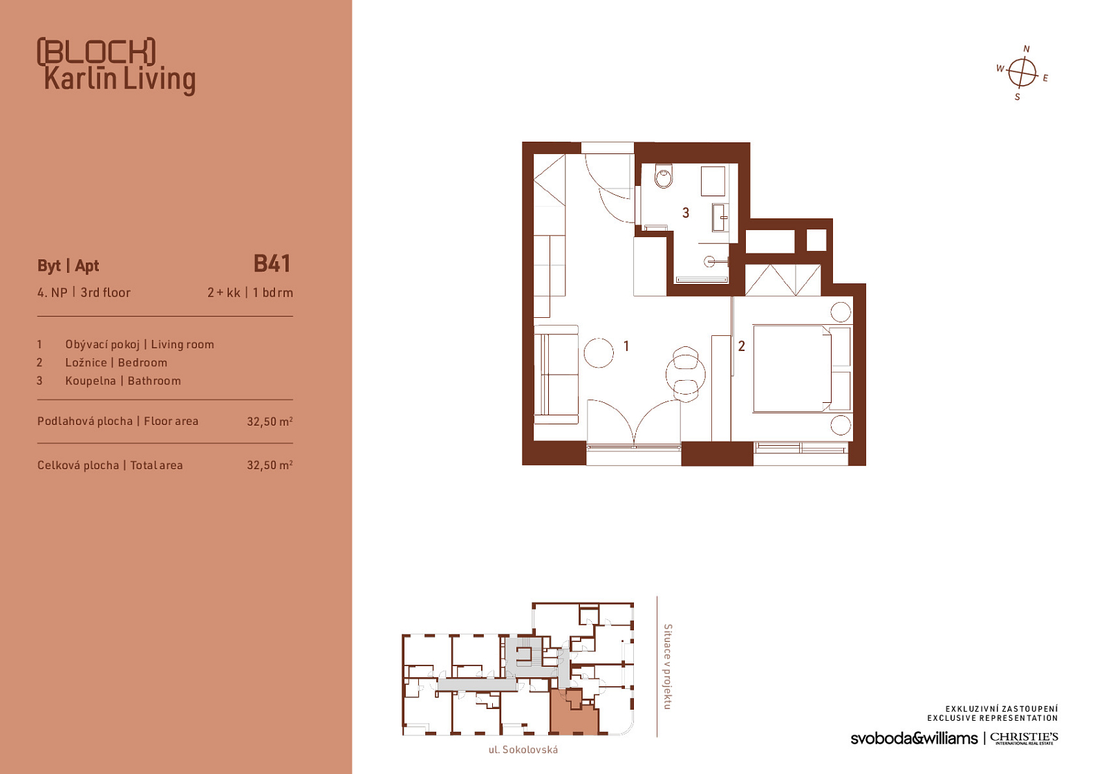 Nabízíme k pronájmu nový, kompletně zařízený byt ve 3. patře nově postaveného rezidenčního projektu Block Karlín Living se společnou terasou na střeše, podzemním parkováním a klidným upraveným vnitroblokem. Sedmipodlažní dům pochází z dílny zavedené architektonické kanceláře Architekti Headhand. Budova se nachází ve vyhledávané pražské čtvrti Karlín v pěším dosahu stanic metra Invalidovna a Křižíkova, i v blízkosti zastávky tramvají. Trendy lokalita s rychlým spojením do centra nabízí kompletní občanskou vybavenost a služby. Bezprostřední okolí tvoří řada moderních business a administrativních center i tradiční městská zástavba s kosmopolitním mixem restaurací, kaváren, bister a obchodů. Čtvrť nabízí pestrou paletu příležitostí k aktivnímu vyžití např. v podobě tenisových kurtů, golfových odpališť, cyklostezky a řady fitness center.