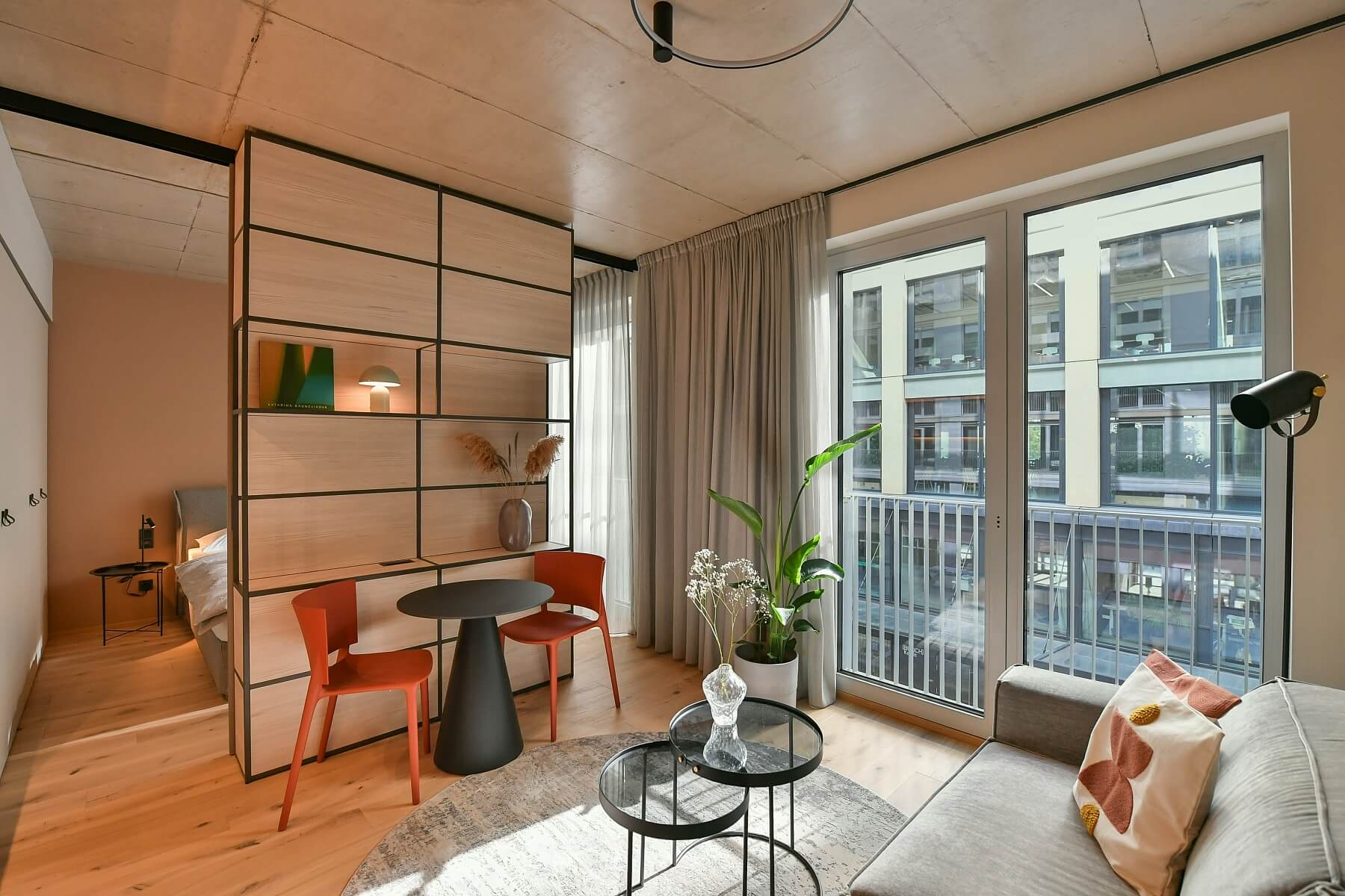 Nabízíme k pronájmu nový, kompletně zařízený byt ve 3. patře nově postaveného rezidenčního projektu Block Karlín Living se společnou terasou na střeše, podzemním parkováním a klidným upraveným vnitroblokem. Sedmipodlažní dům pochází z dílny zavedené architektonické kanceláře Architekti Headhand. Budova se nachází ve vyhledávané pražské čtvrti Karlín v pěším dosahu stanic metra Invalidovna a Křižíkova, i v blízkosti zastávky tramvají. Trendy lokalita s rychlým spojením do centra nabízí kompletní občanskou vybavenost a služby. Bezprostřední okolí tvoří řada moderních business a administrativních center i tradiční městská zástavba s kosmopolitním mixem restaurací, kaváren, bister a obchodů. Čtvrť nabízí pestrou paletu příležitostí k aktivnímu vyžití např. v podobě tenisových kurtů, golfových odpališť, cyklostezky a řady fitness center.
