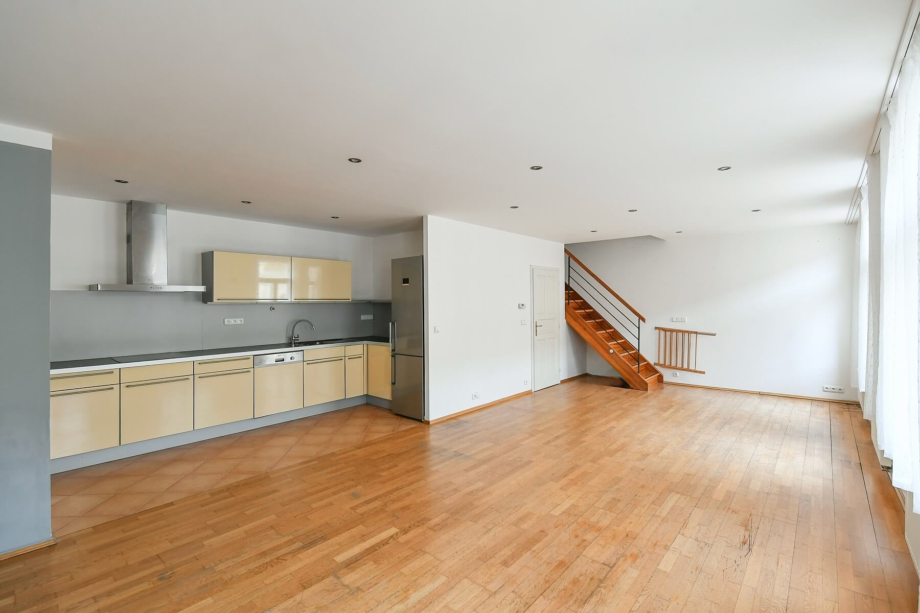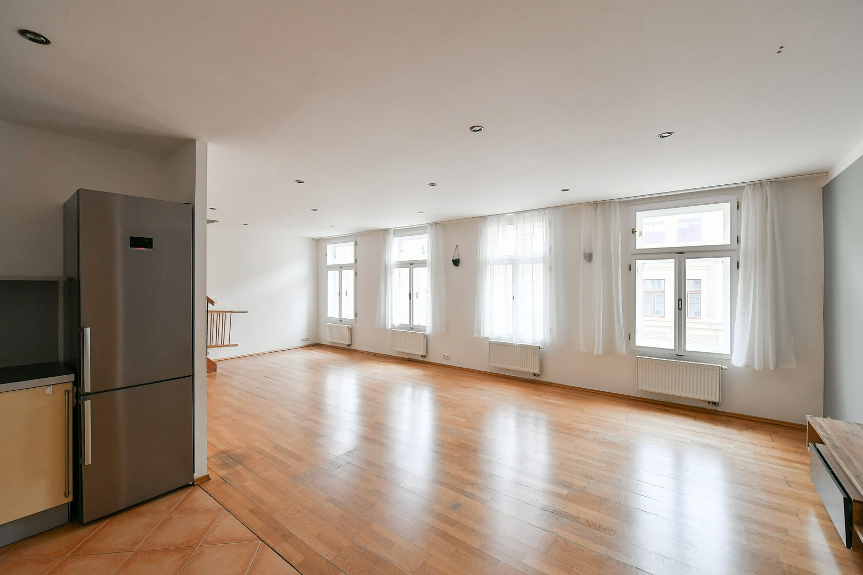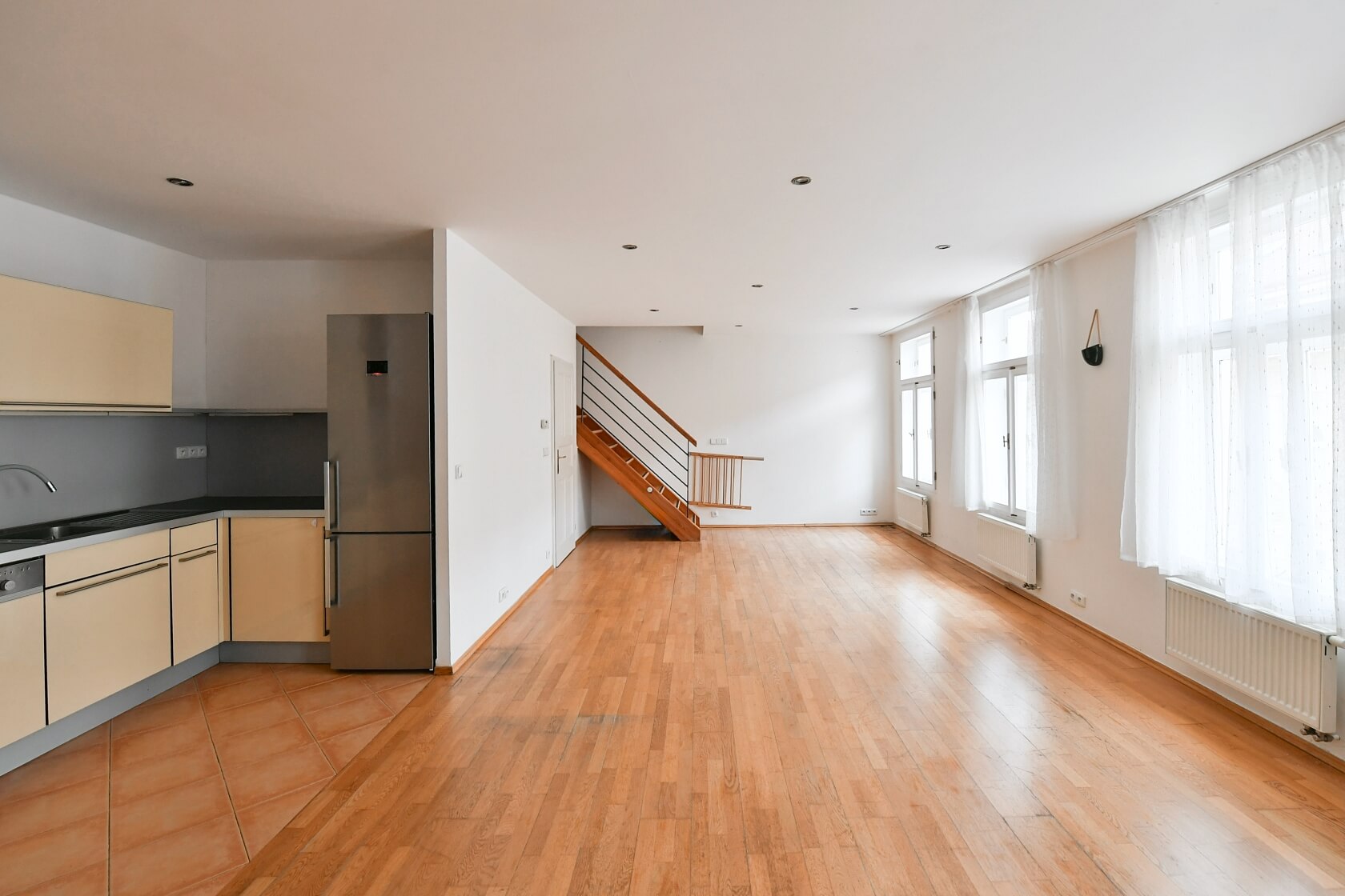 Nabízíme k pronájmu nezařízený mezonetový byt ve 4., nejvyšším patře zrekonstruovaného bytového domu s výtahem. Dům se nachází v klidné ulici na pomezí Žižkova a VInohrad, zároveň i v pěším dosahu centra, pár minut chůze od zastávek tramvají a autobusů, 1 krátkou zastávku ke stanici metra Hlavní nádraží. Lokalita v blízkém dosahu parků Vrch Vítkov, Riegrovy sady a Parukářka, oblíbené cyklostezky a kompletní občanské vybavenosti.