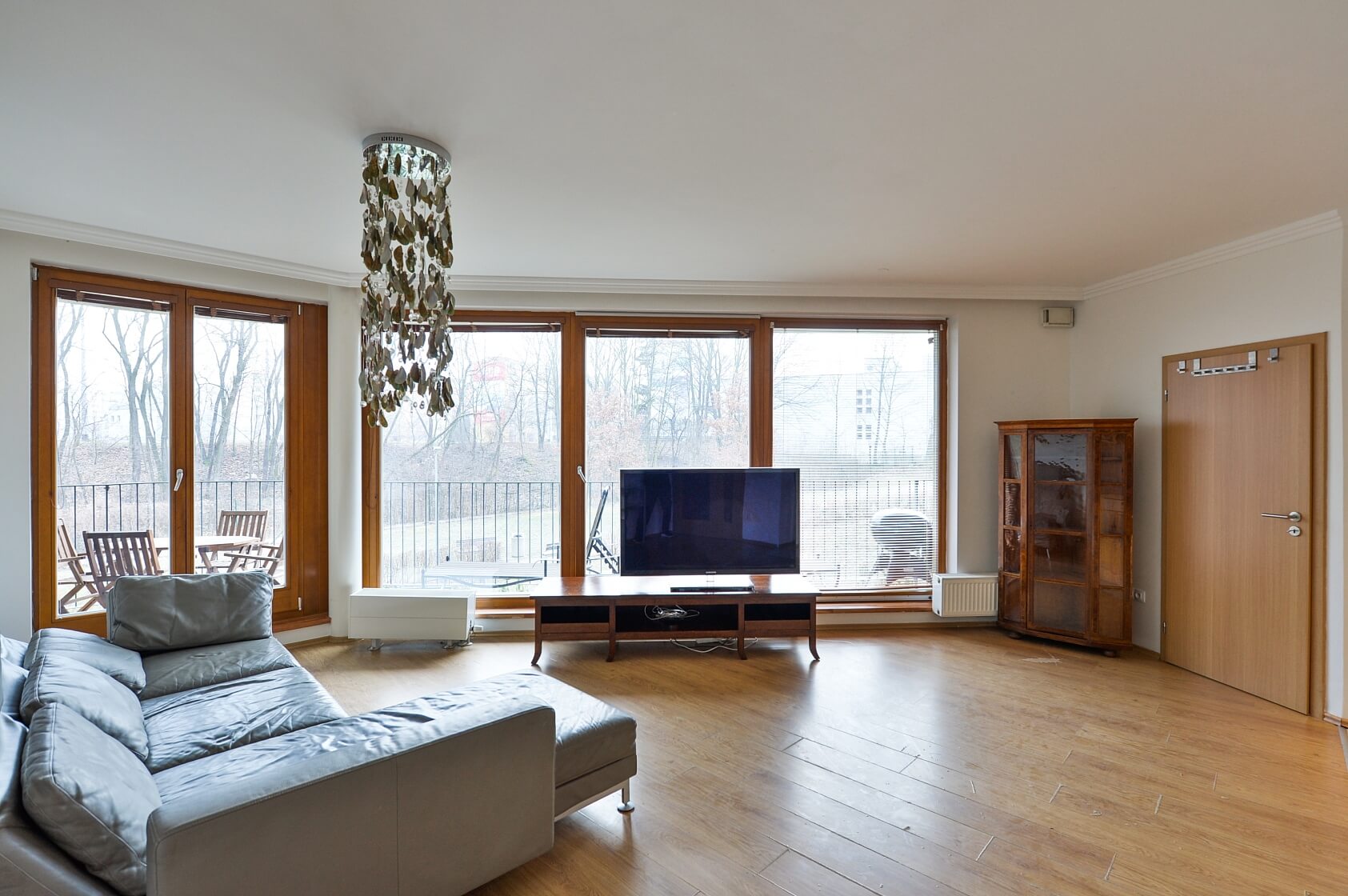 Částečně zařízený byt s prostornou terasou v 1. patře uzavřeného rezidenčního komplexu s recepcí, 24h ostrahou, dětským hřištěm a parkováním v bezprostředním sousedství přírodní rezervace Divoká Šárka, pár minut chůze od zastávky tramvaje. Klidná rezidenční lokalita plná zeleně s rychlým spojením do centra (2 min. k metru Nádraží Veleslavín), na letiště a do mezinárodních škol, plná občanská vybavenost v blízkém dosahu.