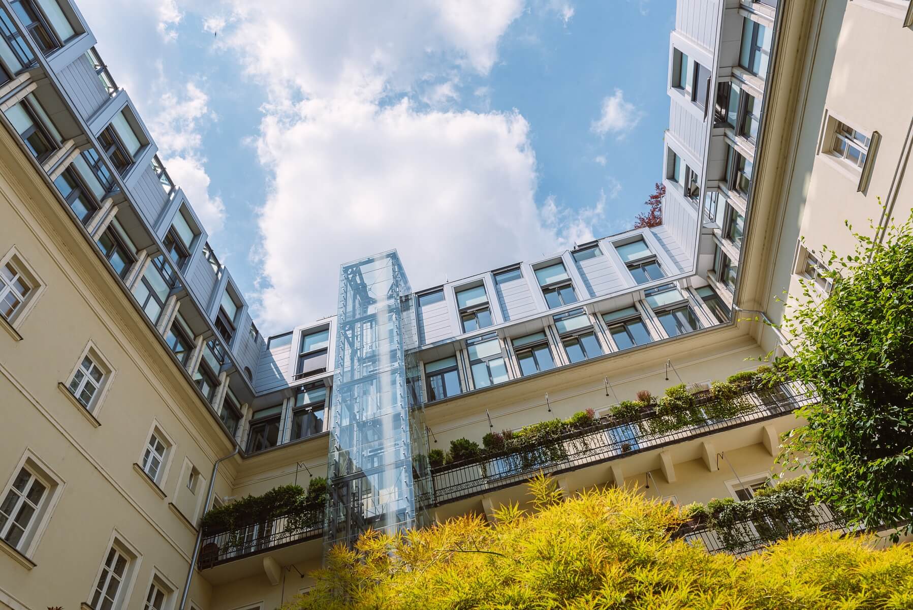 Do standardního vybavení bytu patří laminátové podlahy, dřevěná eurookna. Budova má vlastní 24/7 recepci a příjemný vnitroblok plný zeleně s relaxační zahradou. Vstup do domu na elektronický kartový systém. Kamerový systém a ostraha zajišťuje obyvatelům dokonalé bezpečí.