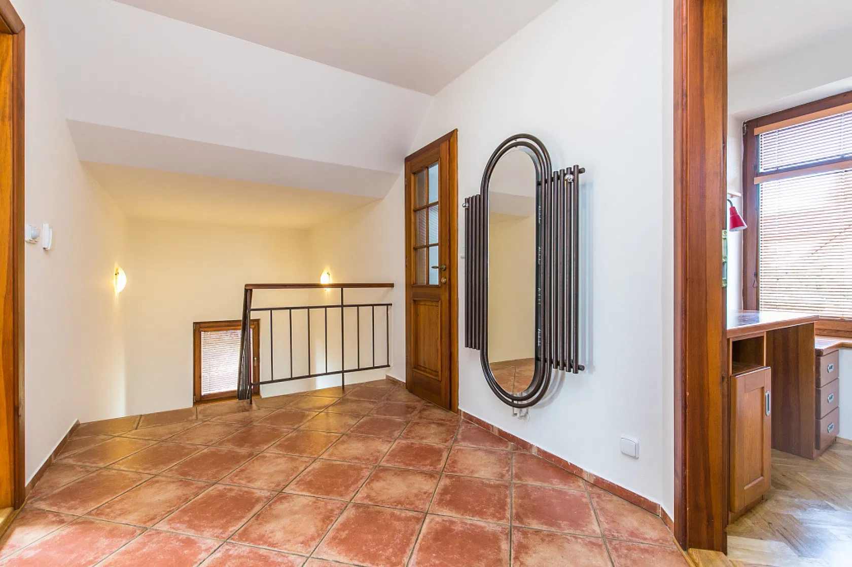 Udržovaná zahrada má bazén 8x4 m, zahradní krb s pergolou a kryté stání pro dvě auta. V ceně nájmu jsou zahrnuty služby zahradníka. Poplatky za spotřebu vody, plyn, elektřinu a O2 internet 8.500 Kč měsíčně. K dispozici od 15.06.2021.